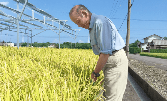 ソーラーシェアリング下で稲作をするということが果たして大丈夫なのかというところには、もちろん初めての経験なので手探りでした。 実際、農業委員会の認定を受けるときも本当に大丈夫なのかという意見もありました。それでも誰かがまず始めないとソーラーシェアリング事業そのものが終わっちゃうので、 とにかくそれを覚悟でやりましたね。その後は現在まで何の問題もないので、農業委員からも評価をいただけるようになりました。