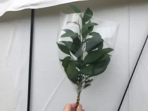 榊は4年目から収穫を開始し、需要が高まる年末を中心にJAの直売所等で販売しています。市場で流通している榊のほとんどが中国産ということもあり、日本産かつ地元産の榊は大変重宝されています。水に付けておけば2〜3ヶ月保つ新鮮さがウリで、太陽光パネルの影が生育にあまり日照を必要としない榊に適した栽培環境を構築できており、品質維持につながっています。