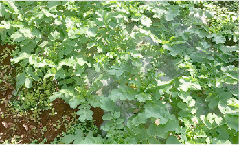 日除けになるからね、休む時にはいいですし、そんなに影響はないですね。気になるとしたらトラクターぶつけたら大変だっていうことと、無農薬だから柱と柱の間の雑草処理が少し面倒よね。 あとは(太陽光パネルの)雨垂れ。発芽するまでは気を使うけど、発芽しちゃえば後はそんなに変わらないです。