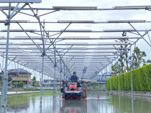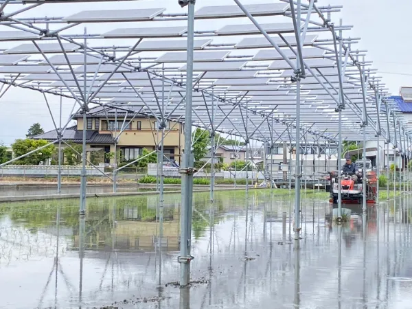 稲作ソーラーシェアリングの田植え作業にお邪魔しました。 ソーラーシェアリング下の機械による運転も、手慣れた作業でスイスイと田植えを進めていました。 田んぼの収量・品質も他と変わらず、別で管理している土地のほうでもソーラーシェアリングをぜひやりたいといったお声までいただけました